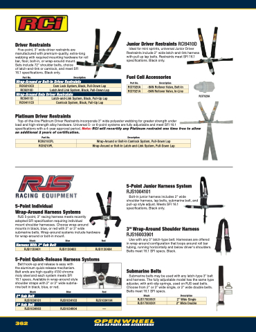 load and high-strength alloy hardware. Universal 5- or 6-point systems are fully adjustable and meet SFI 16.1