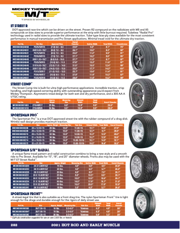 ride to Pro Street. Available for 15", 18", and 20" diameter wheels. Fronts also may be used with the M/T ET Street RadialTM.