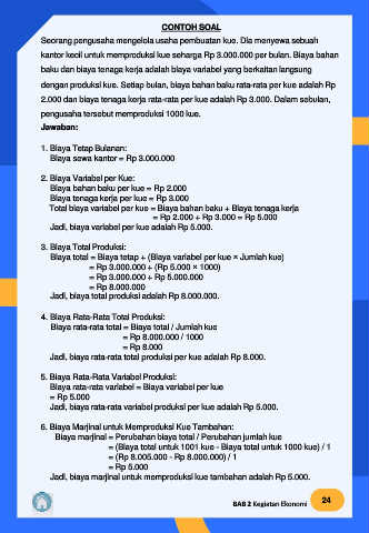 Jadi, biaya marjinal untuk memproduksi kue tambahan adalah Rp 5.000.