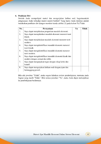 melakukan penilaian diri dengan memberi tanda ceklist (√) pada kolom Ya/Tidak.