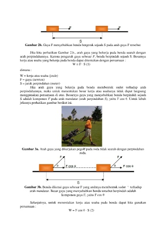 S adalah komponen F pada arah mendatar (arah perpindahan S), yaitu F cos θ. Untuk lebuh