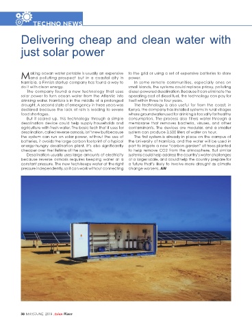 solar power to turn ocean water from the Atlantic into operating cost of diesel fuel, the technology can pay for