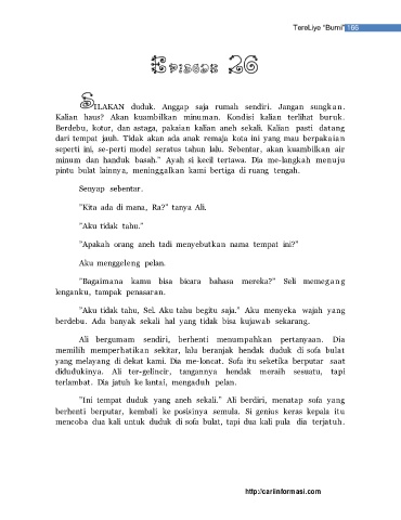 ”Ini tempat duduk yang aneh sekali.” Ali berdiri, menatap sofa yang