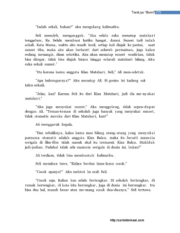 Seli menoleh, mengangguk. ”Aku selalu suka menatap matahar i