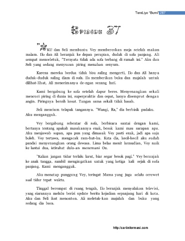 malam. Ilo dan Ali beranjak ke depan perapian, duduk di sofa panjang. Ali