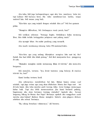 Seli terdiam sebentar. ”Semoga begitu. Setidaknya kalau memang