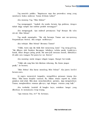 Aku menatap Tog. ”Miss Selena?”