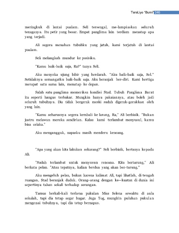 Aku menyeka ujung bibir yang berdarah. ”Aku baikbaik saja, Sel.”