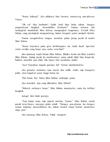 ”Tapi kamu sama saja seperti mereka, Tamus.” Miss Selena susah