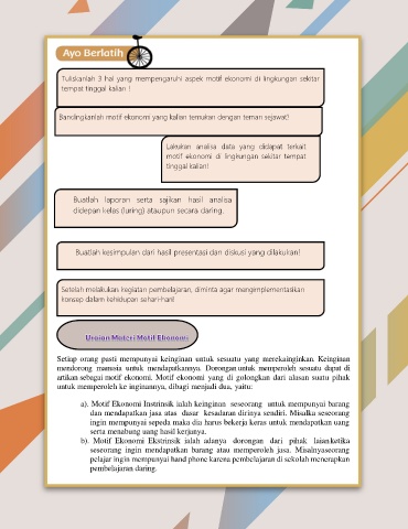 Bandingkanlah motif ekonomi yang kalian temukan dengan teman sejawat!