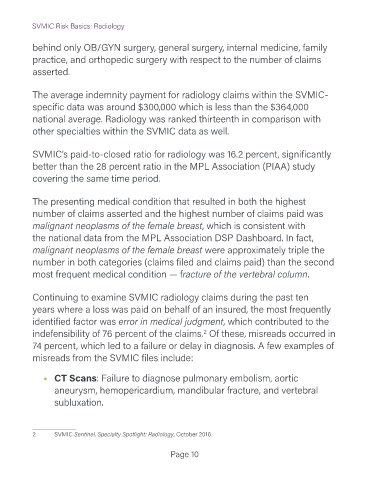 2 SVMIC Sentinel, Specialty Spotlight: Radiology, October 2016.