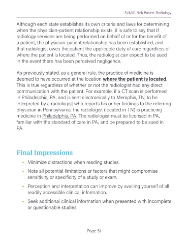 medicine in Philadelphia, PA. The radiologist must be licensed in PA,