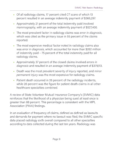 • Of all radiology claims, 17 percent cited CT scans of which 13