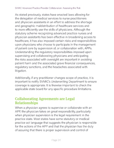 SVMIC Advanced Practice Provider Collaboration: Assessing the Risk