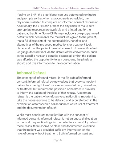 informed consent, informed refusal is not an unusual allegation