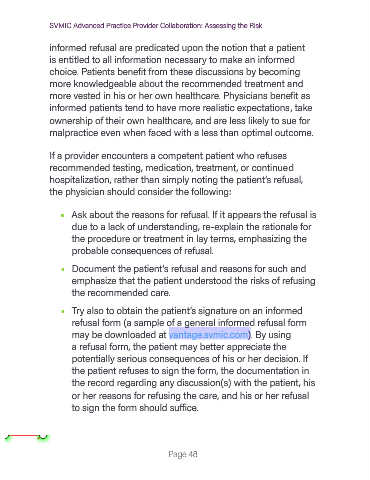 • Document the patient’s refusal and reasons for such and