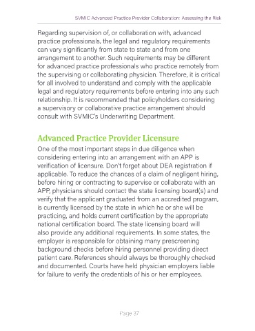 SVMIC Advanced Practice Provider Collaboration: Assessing the Risk