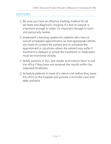 ☐ Schedule patients in need of a return visit before they leave