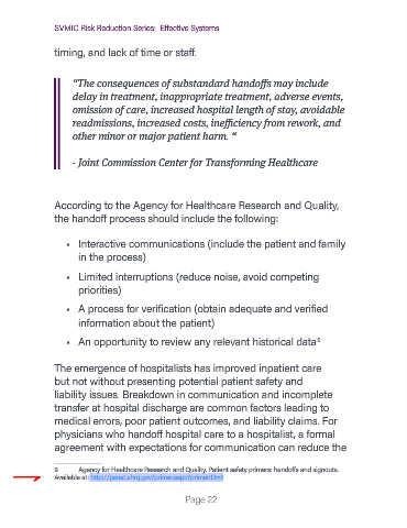 9 Agency for Healthcare Research and Quality. Patient safety primers: handoffs and signouts.