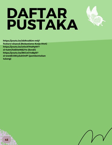 DAFTAR PUSTAKA https://youtu.be/xbRvaSEm-mQ? feature=shared (Mekanisme Kerja Otot) https://youtu.be/uOoX7HePpNY? si=tuImJ1zE0xHtE2Yx (Sendi) https://youtu.be/SKCxCVoBp5I? si=ewxEUi8CyZahlmP1 (pembentukan tulang) 45