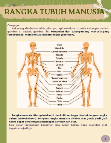 dalam (endoskeleton). Ternyata rangka manusia disebut alat gerak pasif, jadi