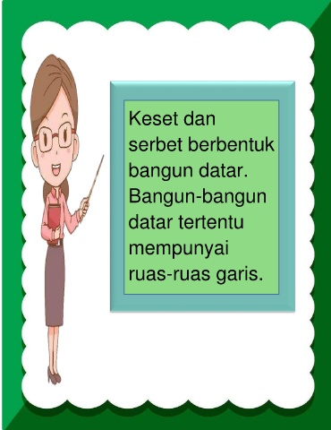 Keset dan serbet berbentuk bangun datar. Bangun-bangun datar tertentu mempunyai ruas-ruas garis.