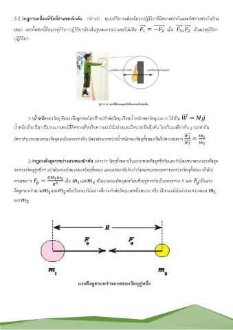 3.2.3กฎการเคลื่อนที่ข้อที่สามของนิวตัน กล่าวว่า ทุแรงกิริยาจะต้องมีแรงปฎิกิริยาที่มีขนาดเท่ากันและทิศทางตรงกันข้าม