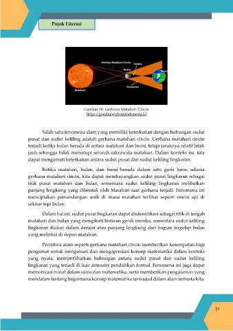 gerhana matahari cincin, kita dapat membayangkan sudut pusat lingkaran sebagai
