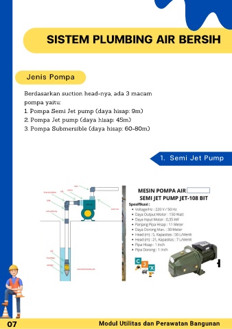 1. Pompa Semi Jet pump (daya hisap: 9m)