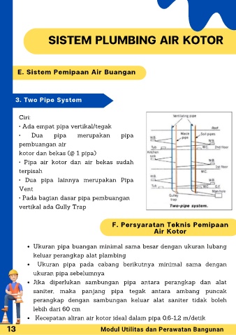 Kecepatan aliran air kotor ideal dalam pipa 0,6-1,2 m/detik
