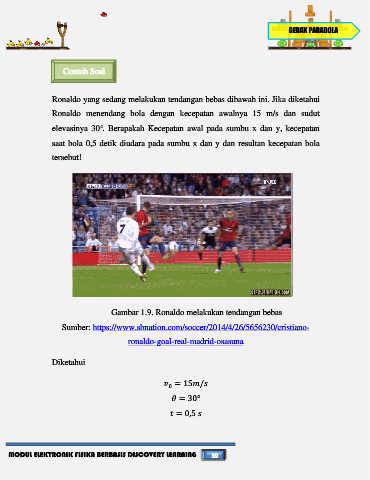 Ronaldo menendang bola dengan kecepatan awalnya 15 m/s dan sudut