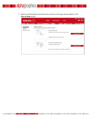 5. Select one of the Business Card Formats by clicking on the image, the description, or the Place an Order button.