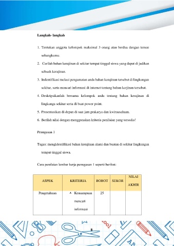 sekitar, serta mencari informasi di internet tentang bahan kerjinan tersebut.