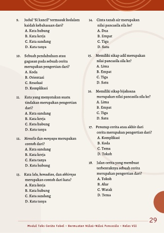 9. Judul "Si kancil" termasuk kedalam 14. Cinta tanah air merupakan