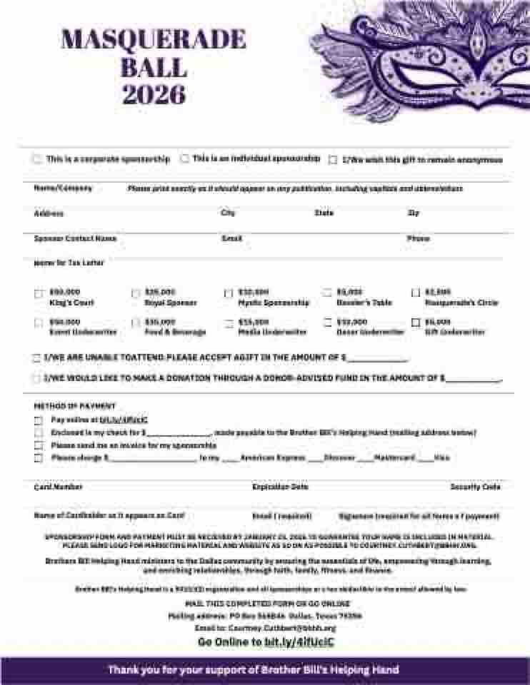 SPONSORSHIP FORM AND PAYMENT MUST BE RECIEVED BY JANUARY 25, 2026 TO GUARANTEE YOUR NAME IS INCLUDED IN MATERIAL.