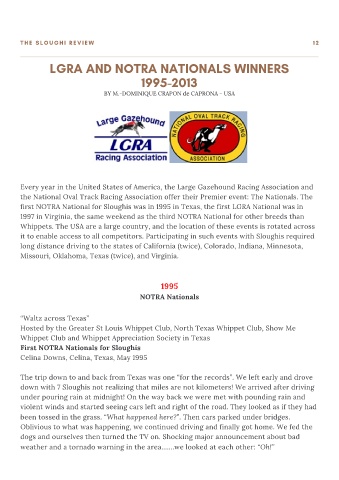 first NOTRA National for Sloughis was in 1995 in Texas, the first LGRA National was in