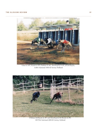 T H E S L O U G H I R E V I E W 1 9 Fahel in #4, Bassel in #3, Balsam in #2, Bouthayna in #1, all Shi’Rayân, LGRA National 2001 © Genny Holland A’Ssissa Shi’Rayân in #2 and Bouthayna Shi’Rayân in #1, NOTRA National 2001 © Genny Holland