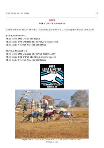 Gazehounds in Texas, Boswell, Oklahoma, November 1-2. 5 Sloughis entered both days.