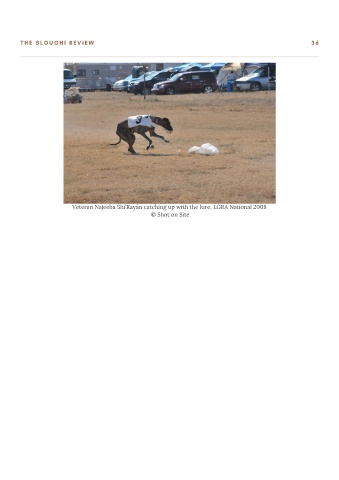 T H E S L O U G H I R E V I E W 3 6 Veteran Najeeba Shi’Rayân catching up with the lure, LGRA National 2008 © Shot on Site