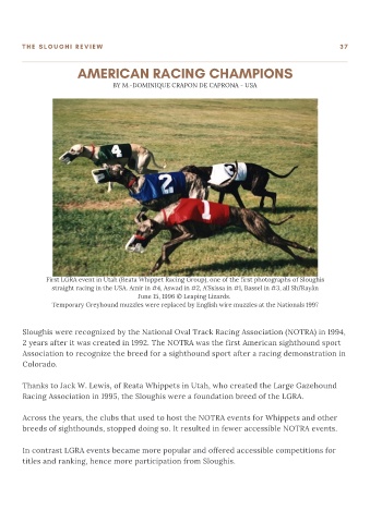 Racing Association in 1995, the Sloughis were a foundation breed of the LGRA.