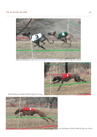 T H E S L O U G H I R E V I E W 4 9 Najeeba Shi’Rayân in #3, Bahlawaan Sheik el Arab in #4, SSARA 2006 © Big Paw Prints Nibal Shi’Rayân, SSARA 2006 © Big Paw Prints Laza Shi’Rayân, SSARA 2006 © Big Paw Prints