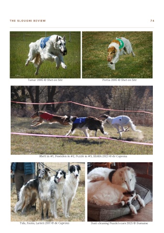 T H E S L O U G H I R E V I E W 7 4 Tamar 2005 © Shot on Site Portia 2005 © Shot on Site Rhett in #1, Poseidon in #2, Puzzle in #3, SSARA 2023 © de Caprona Tula, Fauna, Larsen 2017 © de Caprona Dash cleaning Puzzle’s ears 2025 © Dumaine