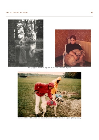 T H E S L O U G H I R E V I E W 8 3 1971 puppy Uddah on my lap, 1973 Uddah still on my lap Versoix 1973, Uddah with my sister Elisabeth and her brother Ugam getting ready