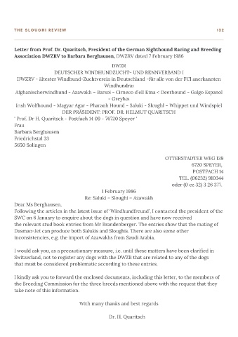 Letter from Prof. Dr. Quaritsch, President of the German Sighthound Racing and Breeding