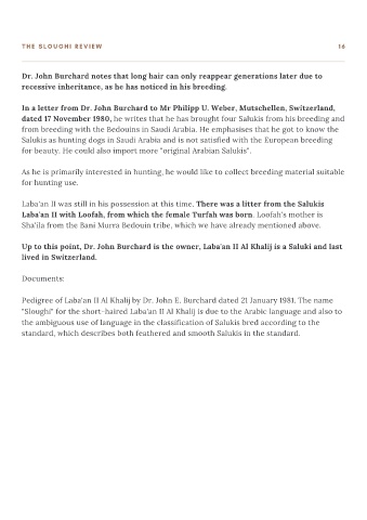 Up to this point, Dr. John Burchard is the owner, Laba'an II Al Khalij is a Saluki and last
