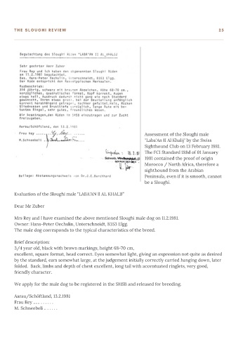 Mrs Rey and I have examined the above mentioned Sloughi male dog on 11.2.1981.