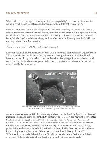 A second assumption about the Egyptian origin is based on the Saluki of Syrian type "Luman"