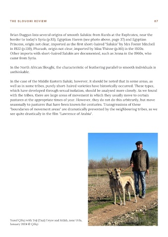 Brian Duggan lists several origins of smooth Salukis: from Kurds at the Euphrates, near the