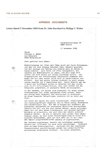 T H E S L O U G H I R E V I E W 9 9 APPENDIX - DOCUMENTS Letter dated 17 November 1980 from Dr. John Burchard to Philipp U. Weber