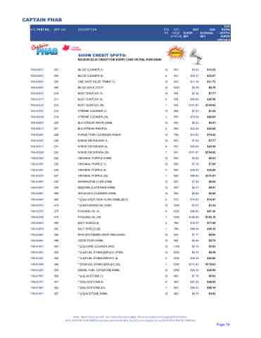 201 BILGE CLEANER,1L 202 BILGE CLEANER,4L 205 ONE SHOT BILGE TRMNT,1L 206 BILGE SOCK,3''X15'' 210 BOAT SOAP,E/C,1L 211 BOAT SOAP,E/C,4L 212 BOAT SOAP,E/C,20L 215 XTREME CLEANER,1L 216 XTREME CLEANER,20L 220 BLK.STREAK RMVR.935ML 221 BLK.STREAK RMVR,4L 228 PURGE TANK CLEANSER,450GR 230 N/SKID DECKW ASH,1L 231 N/SKID DECKW ASH,4L 232 N/SKID DECKW ASH,20L 234 ORIGINAL PURPLE,935ML 235 ORIGINAL PURPLE,1L 236 ORIGINAL PURPLE,4L 237 ORIGINAL PURPLE,20L 245 AWNING/FAB.CLNR,935ML 250 MOLD/MILD.STN.RMR,935ML 256 INFL&VINYL CLEANER,935ML 260 **(LQ)2-STEP,TEAK CLNR,500ML(SET) 272 **(LQ)FOGGING OIL,340G 275 FOGGING OIL,4L 276 FOGGING OIL,20L 280 SALT SHIELD,4L 281 SALT SHIELD,20L 290 SPID.SPOT&BIRD DROP.REM,935ML 298 ODOR STOP,935ML 301 **(LQ)CARB CLEANER,340G 303 **(LQ)FUEL STABILIZER,E/C,473ML 304 **(LQ)FUEL STABILIZER,E/C,4L 305 **(DG)FUEL STABILIZER,E/C,20L 320 DIESEL FUEL CAT&STAB,535ML 350 **(LQ) ACETONE,1L 351 **(DG) ACETONE,4L 352 **(DG) ACETONE,20L 357 **(LQ)ACETONE,500ML
